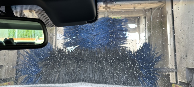 朝一は、洗車機 笑